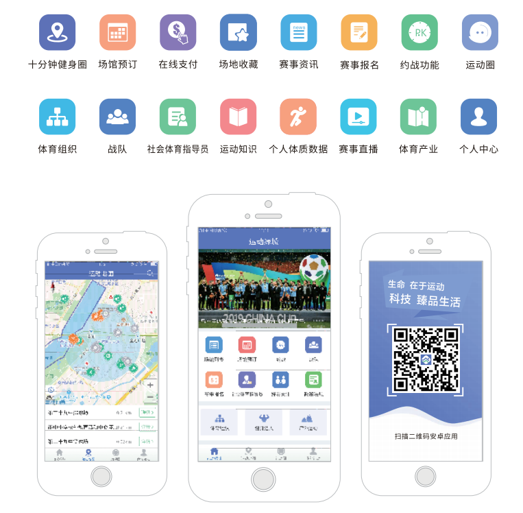 南寧市體育界為全面落實全民健身國家戰略,提高人民群眾身體素質和健康水平,廣泛開展全民健身,為廣大市民全民健身運動提供便捷的、全方位的體育信息資源服務,開發建設本項目。 本項目通過整合政府和社會信息化資源,搭建“互聯網+”全民健身服務平臺,主要包括地圖搜索、場館預定、新聞資訊、約戰、運動管理和信息發布等功能。本項目為智慧城市建設中的重要一環,是智慧體育的重要組成部分。